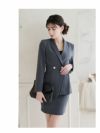 視線を奪うペプラムシルエットで、メリハリのある圧倒的な美ボディを。 ダブルボタンペプラムジャケット&タイトスカートセットアップスーツ 加賀美早紀 着用キャバスーツ【BelsiaLUX】(S/M/L/XL(2L))(ネイビー/グレー)