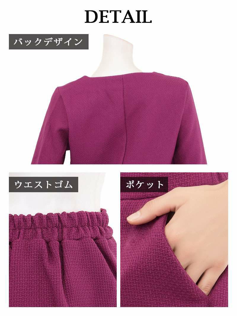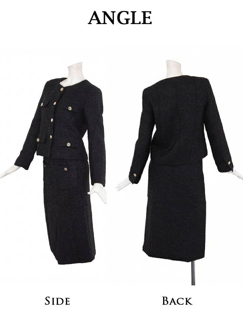 上品な華やかさで彩る♪ スーパーSALE¥9480→¥8532! 膝丈デザインカラーツイードレディーススーツ 加賀美早紀 着用 キャバスーツ 【Belsia】(S/M/L/XL(2L))(ブラック/ピンク)