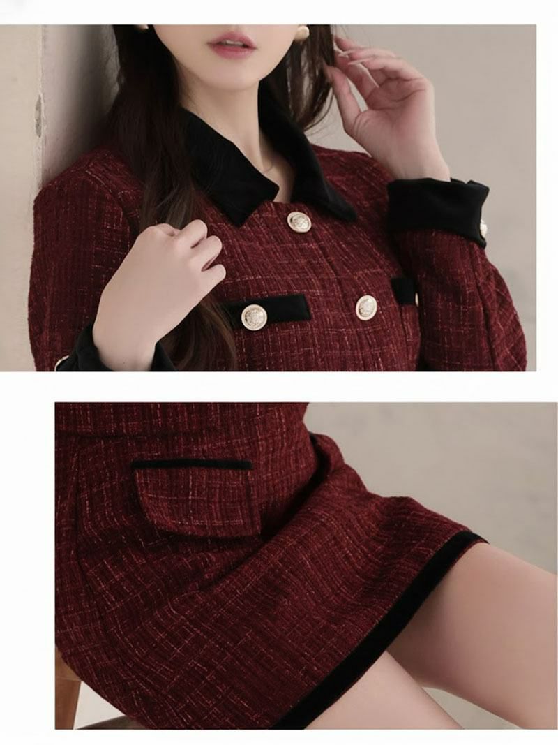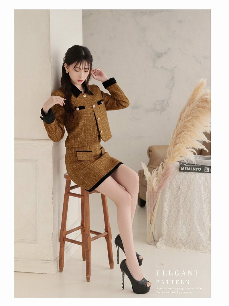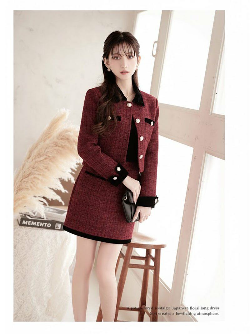 金ボタンが煌めくツイードセットアップで、誰よりも凛とした気品を纏う。 先行予約割¥9900→¥9405!※一部予約販売※襟付き金ボタンツイードジャケット×タイトミニスカートセットアップ フォーマルキャバドレス 加賀美早紀 着用キャバスーツ【Belsia】(S/M/L/XL(2L))(ブラック/レッド/ベージュ)
