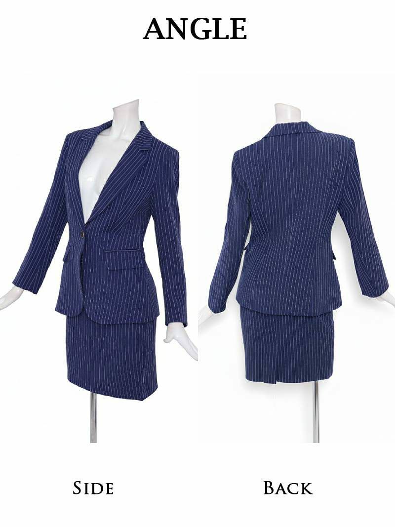 知的な色香を纏う、スタイルアップ確実なピンストライプセットアップスーツ。 先行予約割¥11800→¥11210!※一部予約販売※洗練ピンストライプ柄テーラードジャケット&タイトスカートセットアップスーツ 加賀美早紀 着用キャバスーツ【BelsiaLUX】(S/M/L/XL(2L))(ホワイト/ブラック/ネイビー)