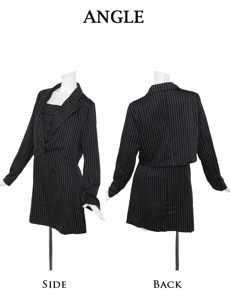 ショート丈ジャケットとストライプの相乗効果で、圧倒的な美脚と知性を手に入れる。 先行予約割¥4980→¥4731!※一部予約販売※ストライプ柄ショート丈ジャケット付きタイトミニワンピーススーツ りせり 着用 キャバスーツ【RyuyuChick】(M/L/XL(2L)/XXL(3L))(ブラック)