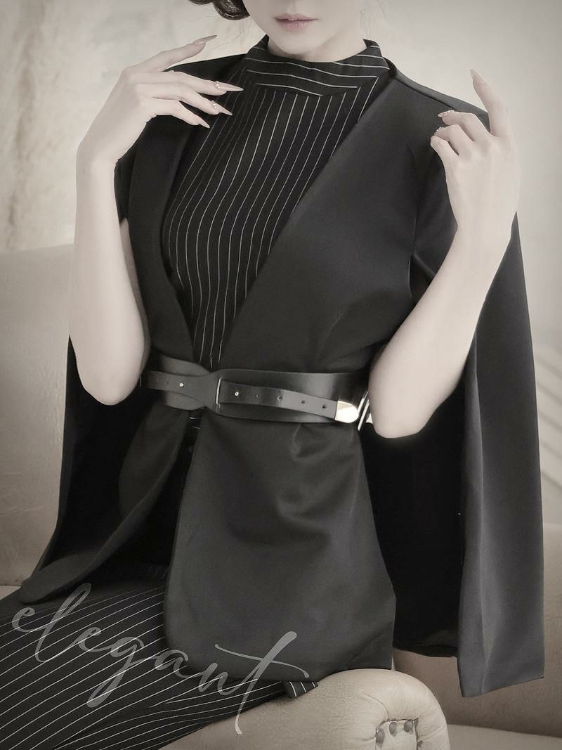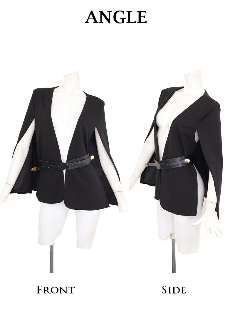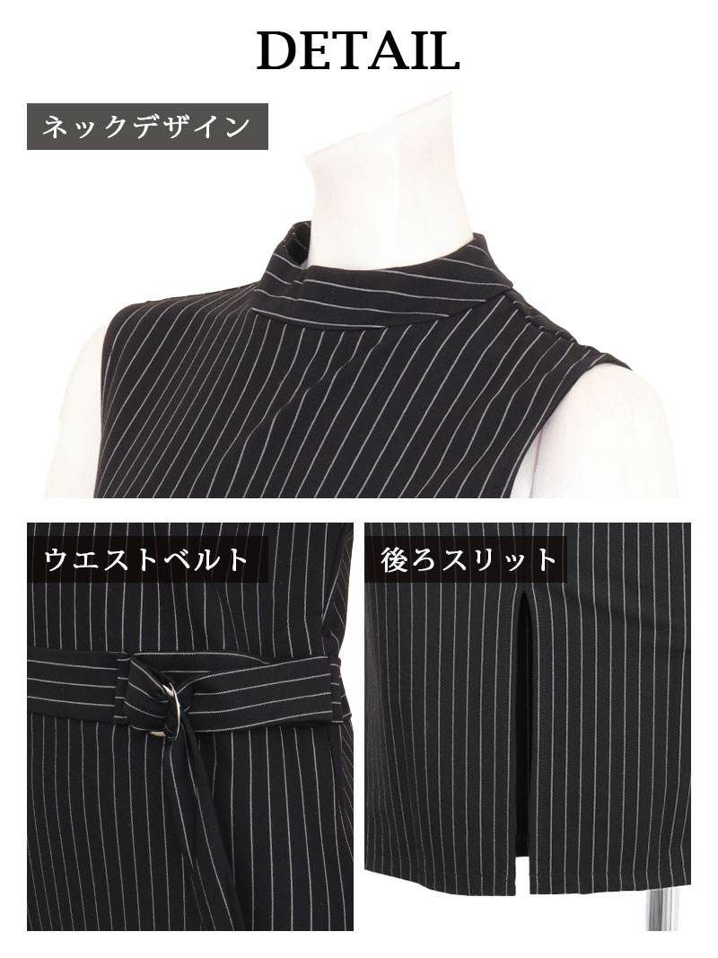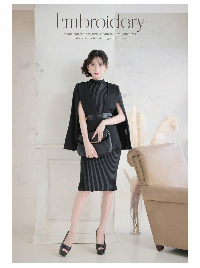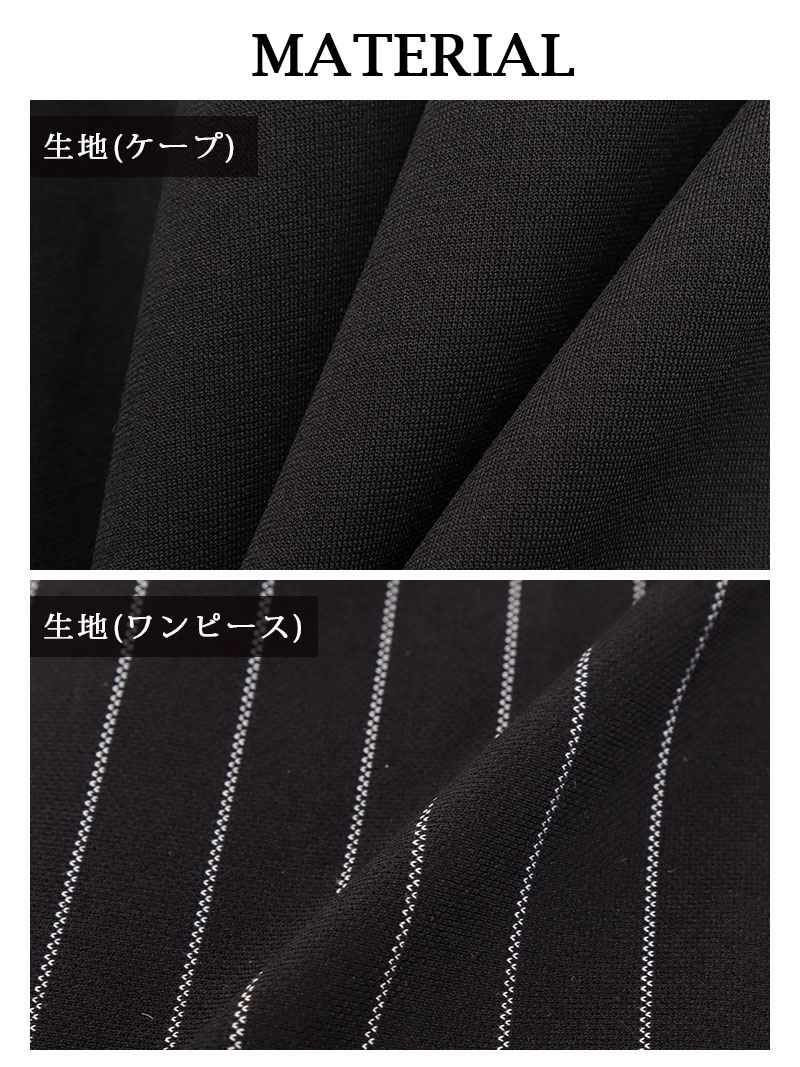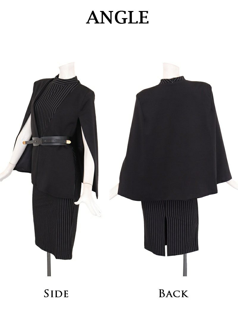 ケープを纏ったような気品あふれるスタイルで、大人の色香を放つ最上級セットアップ。 先行予約割¥12800→¥12160!※一部予約販売※ケープ風ジャケット×ストライプタイトノースリーブワンピースセットアップスーツ ベルト付き 加賀美早紀 着用 キャバスーツ【BelsiaLUX】(S/M/L/XL(2L))(ブラック)