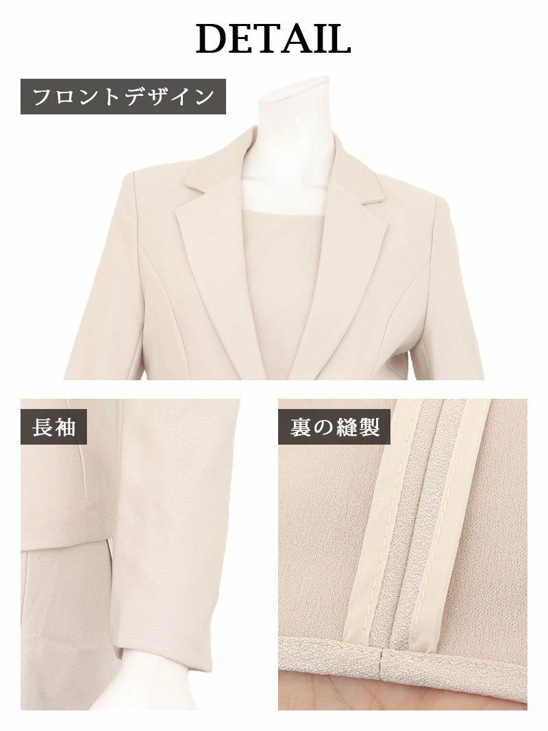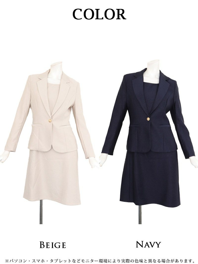 繊細なラメの輝きと上質なシルエットで、周囲と差がつく大人のフォーマルスタイル。 先行予約割¥13800→¥13109!※一部予約販売※ほんのりラメが輝く上質なテーラードジャケット付き膝丈ワンピーススーツ 加賀美早紀 着用キャバスーツ【BelsiaLUX】(S/M/L/XL(2L))(ベージュ/ネイビー)
