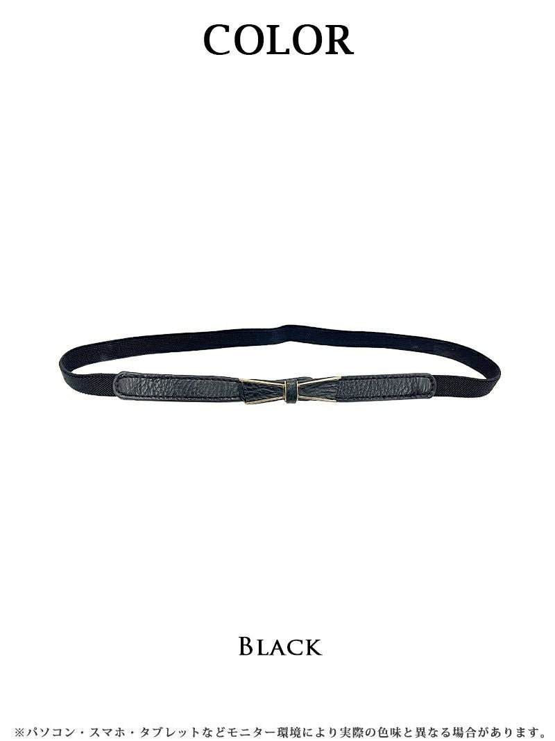 さりげないゴールドパイピングがアクセント ブラック細ベルト 大人リボンベルト【Ryuyu】(フリーサイズ)(ブラック)