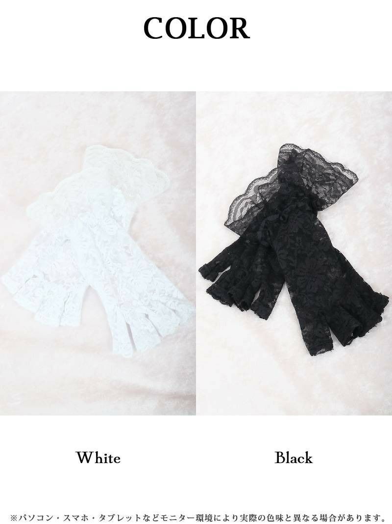 一気に可愛くなれるサブアイテム♪ オープンフィンガー白レースグローブ【Ryuyu】(フリーサイズ)(ブラック/ホワイト)