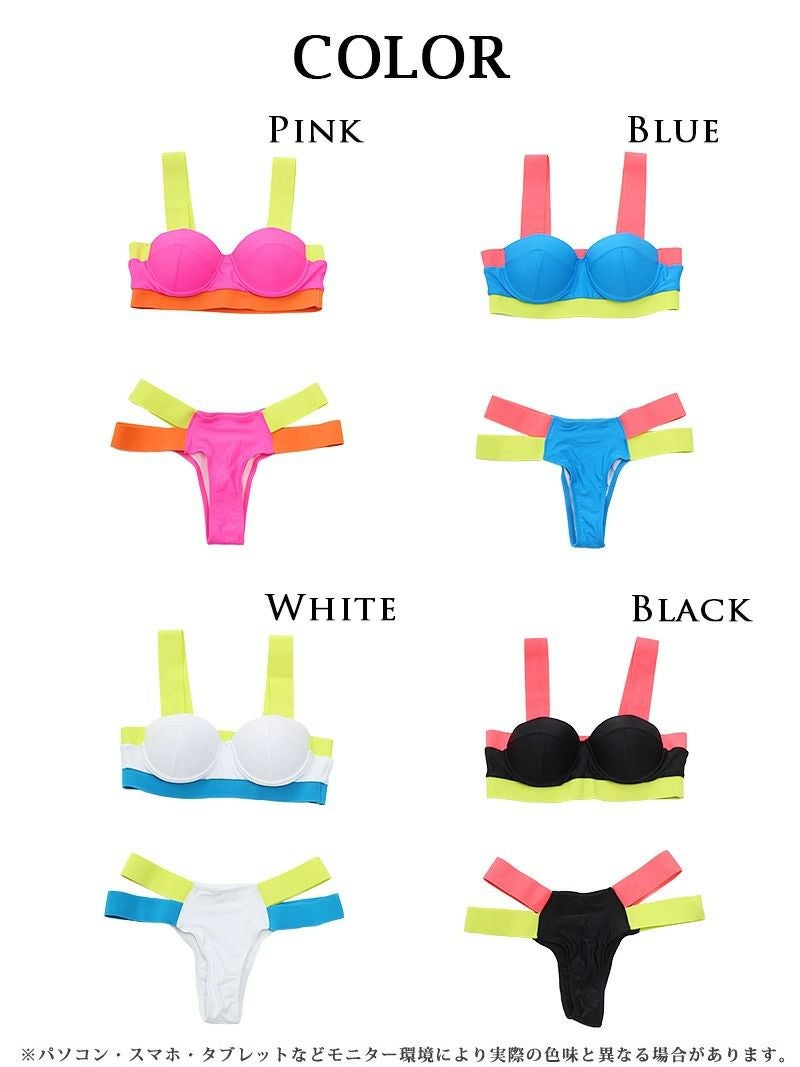 水着 ワンカラーバストカットバンドゥビキニ ENA 着用 レディース水着【Ryuyu】(S/M/L)(ピンク/ブルー/ブラック)