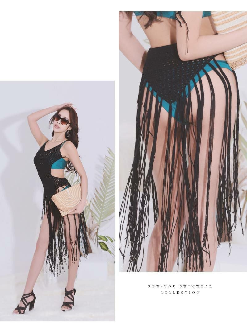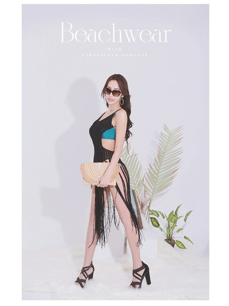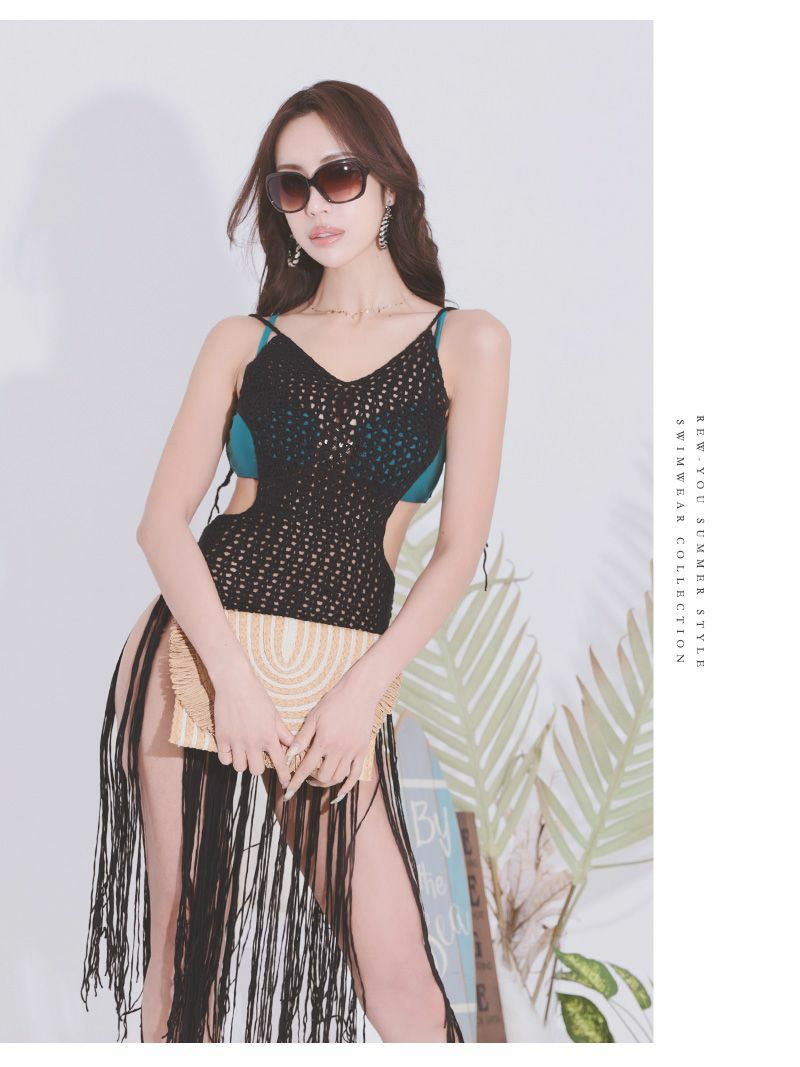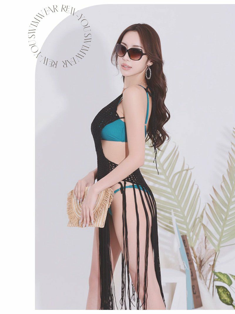 水着 海外セレブのようなこなれ感を演出するインポート風のフリンジ付きかぎ編み水着アウター 【Ryuyu】