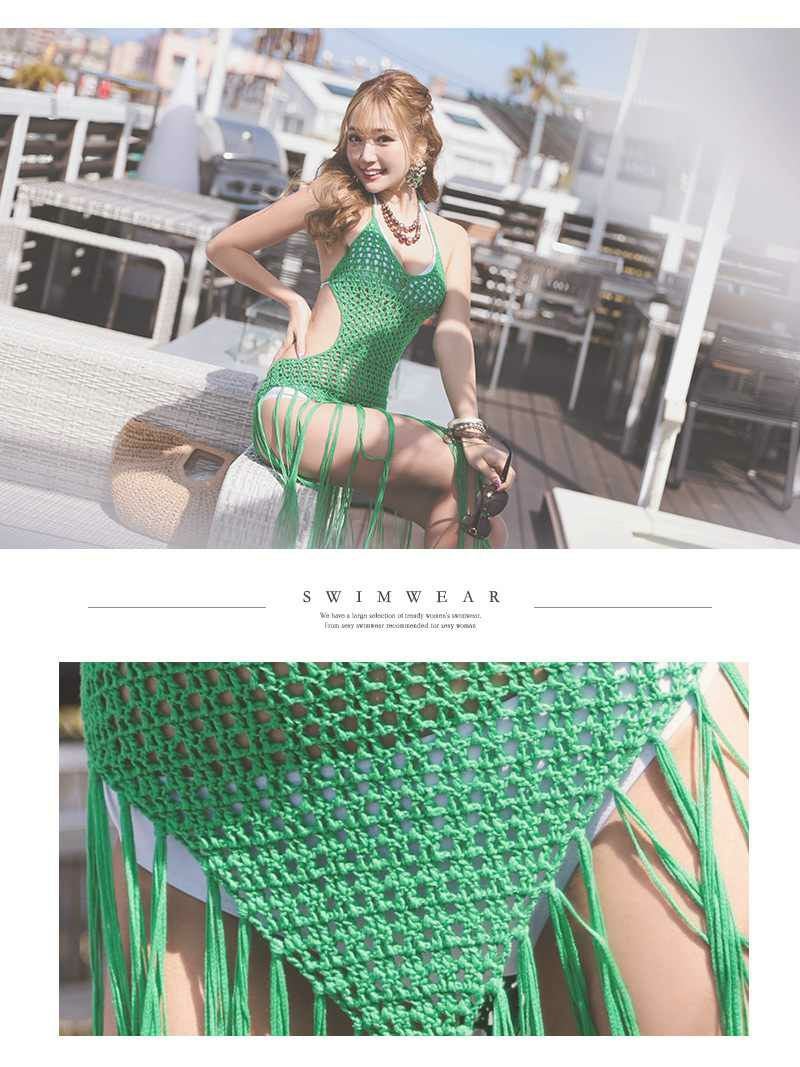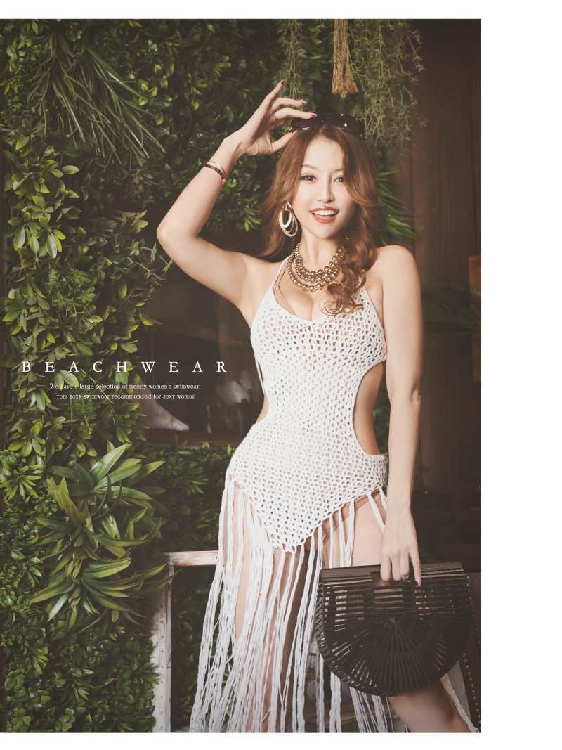 4. 水着 海外セレブのようなこなれ感を演出するインポート風のフリンジ付きかぎ編み水着アウター 【Ryuyu】(フリーサイズ)(オレンジ/グリーン/ホワイト/ブラック/ベージュ)