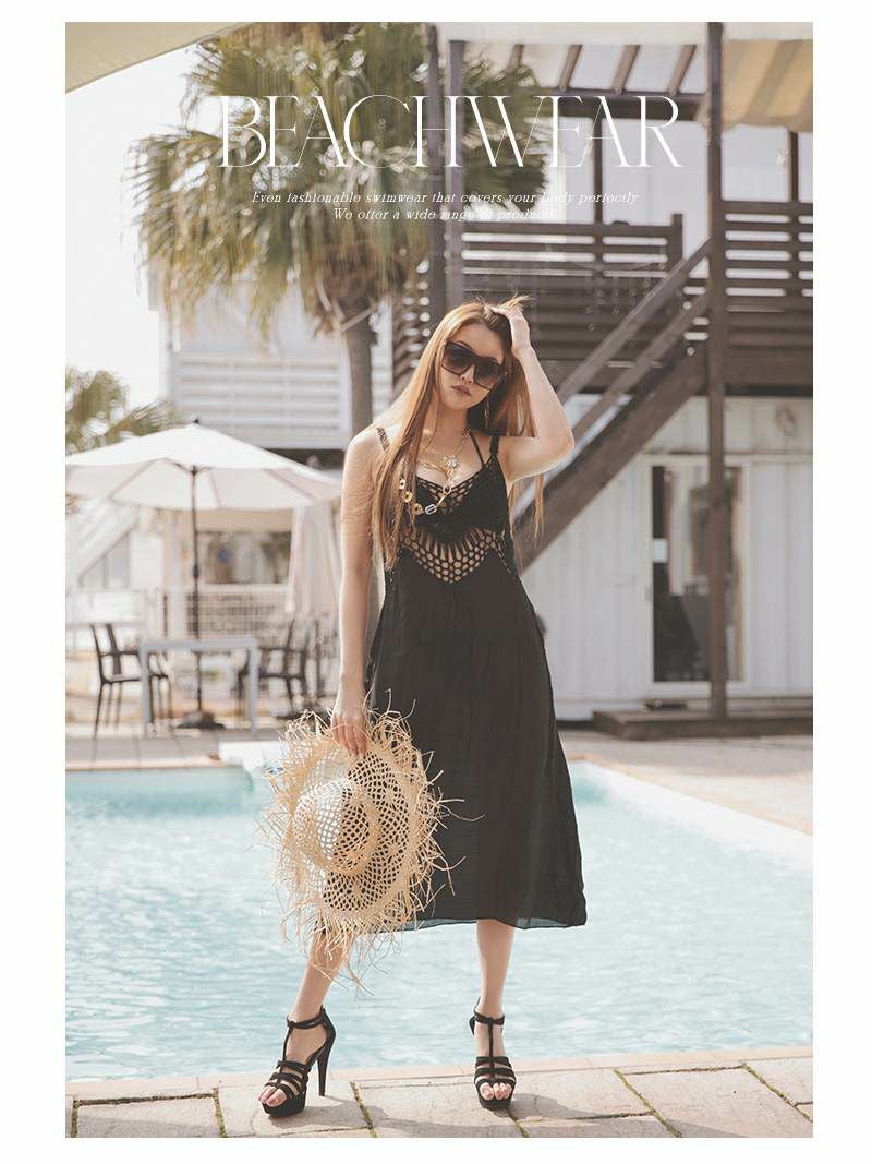 透け感のあるビーチアウターは、体型カバーしながらセクシーさも演出。
