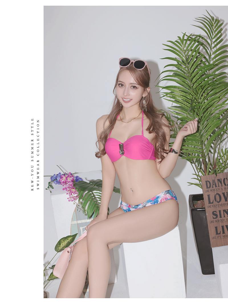 6. 鮮やかなピンクにパイナップルチャームが映える南国感たっぷりの2WAYバンドゥビキニ【Ryuyu】(S/M)(ピンク/ブルー)