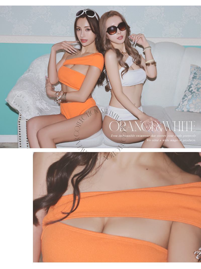 7. 水着 カラバリ豊富でリブ素材が大人っぽいワンショルダーバンドゥビキニ 【Ryuyu】(S/M/L)(ホワイト/ネオンイエロー/ピンク/イエロー/オレンジ/ブラック)