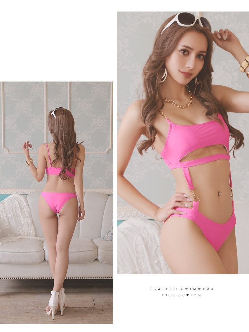 大胆な下乳見せがセクシーでインスタ映え間違いなしの無地派手カワビキニ 【Ryuyu】