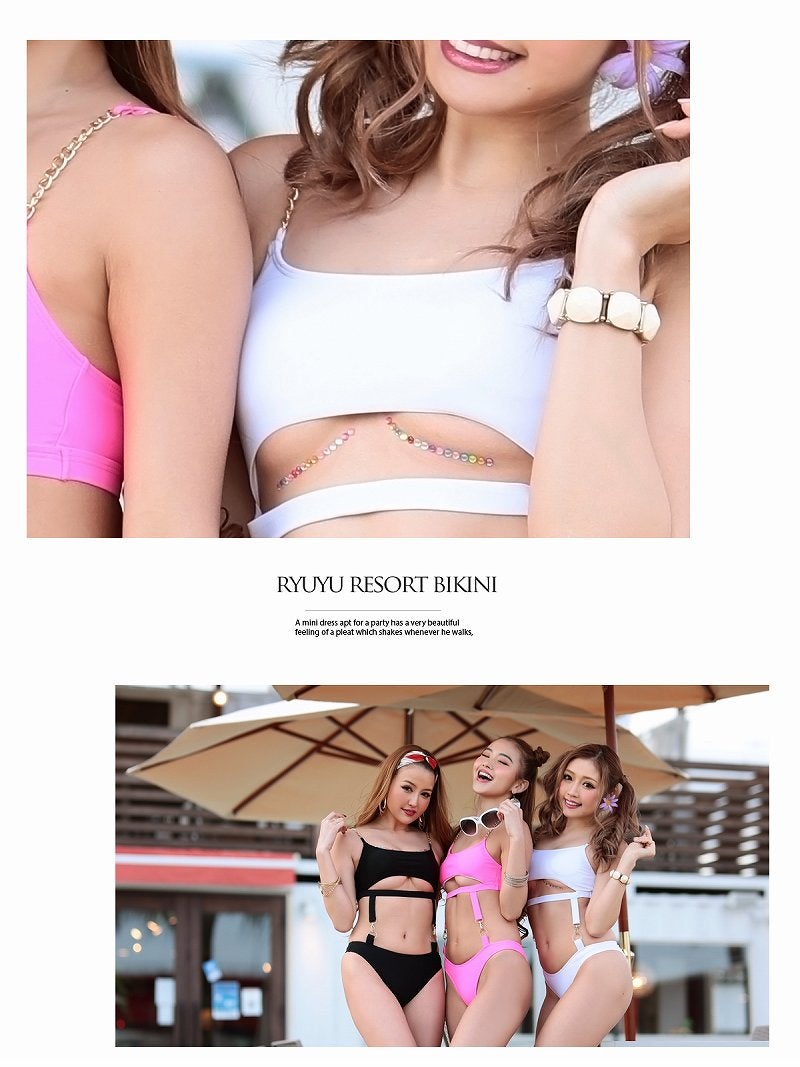 4. 大胆な下乳見せがセクシーでインスタ映え間違いなしの無地派手カワビキニ 【Ryuyu】(M/L)(ブラック/ホワイト/ピンク)