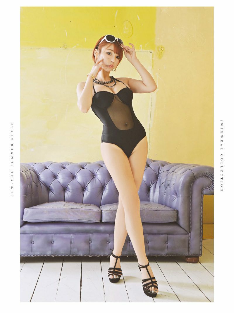 大胆なお腹透けがセクシーな黒色水着はあえて透けさせて男心をくぎ付けにしちゃうワンピース水着です。