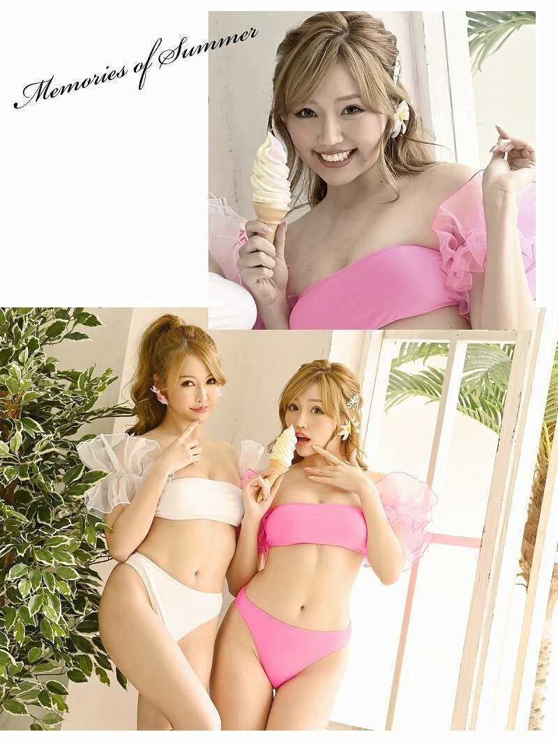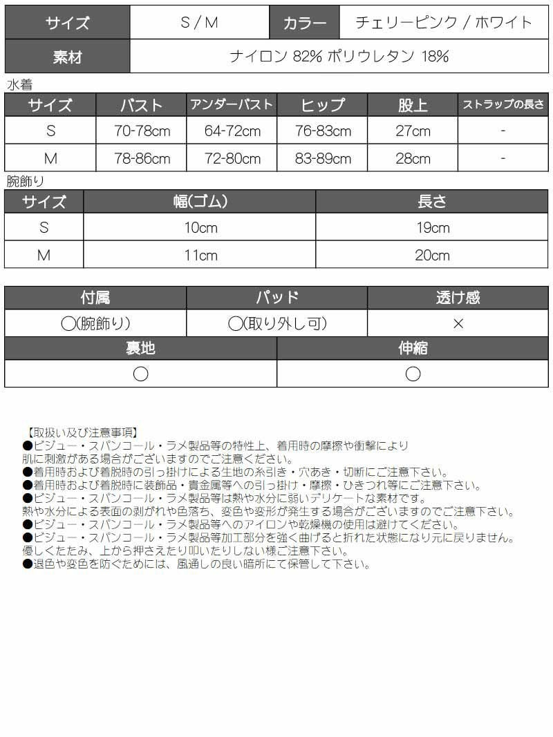 4. 水着 2wayバンドゥビキニ取り外し可能腕輪付きカスタム水着【Ryuyu】(S/M)(チェリーピンク/ホワイト)