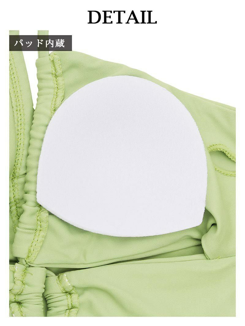 6. ショーパン風カッコかわいい三角ビキニ レディース水着2点セット【Ryuyu】(M)(グリーン/ブラック)