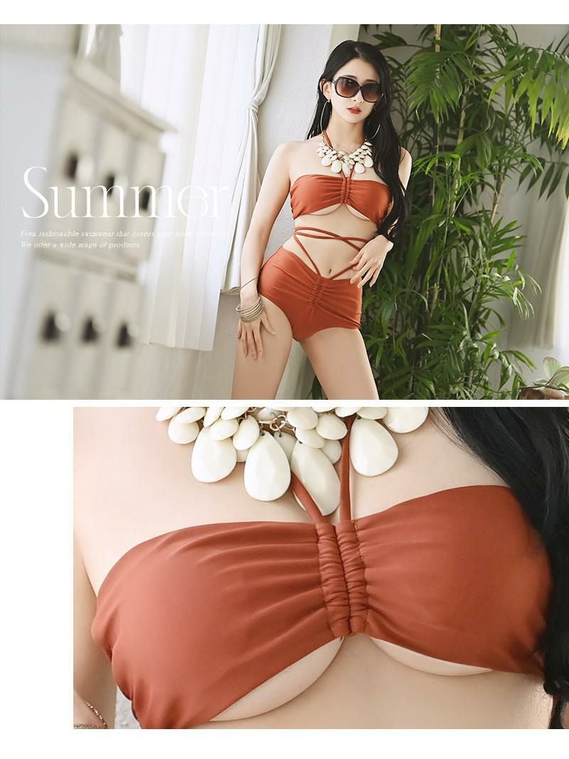 4. 水着 2wayホルターネックバンドゥビキニ2点セットレディース水着【Ryuyu】(S-M/M-L)(ブラウン)