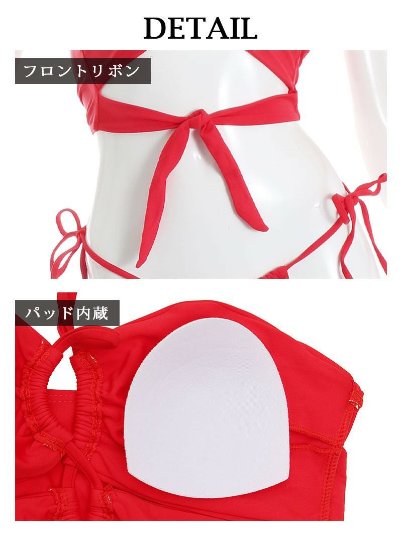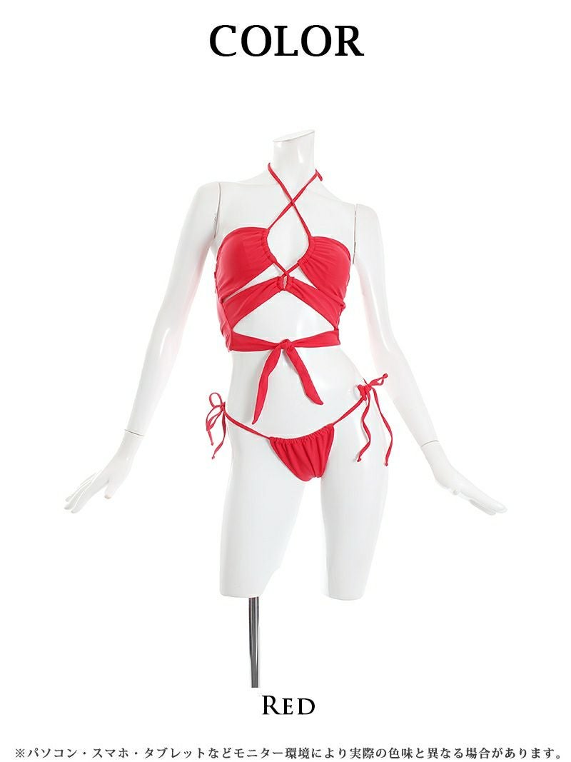 4. 水着 セクシーバストカットデザインレディース水着2点セット【Ryuyu】(S-M)(レッド)