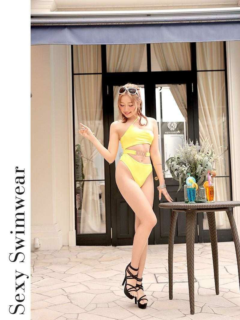 デコルテを華奢魅せさせてくれるバンドゥー風のワンショルダーがヌケ感のあるヘルシーな色気漂うセクシーな水着です。