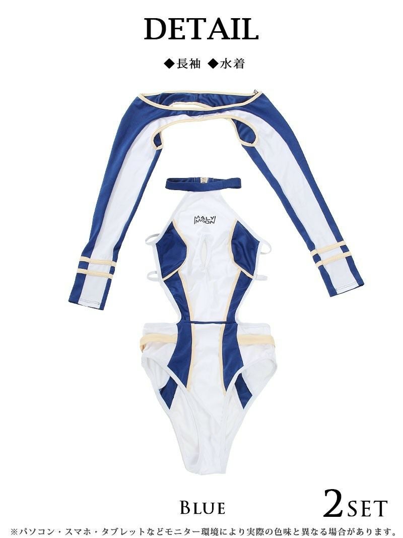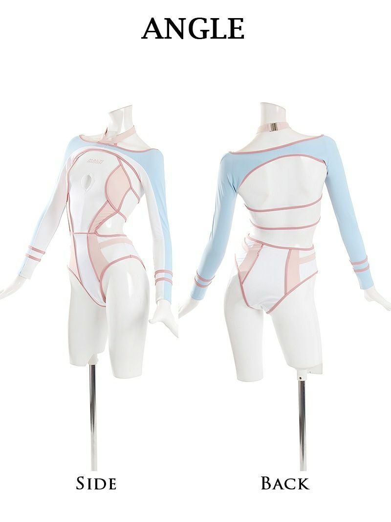 撮影会にもオススメ水着! 水着 2wayアームカバー付きコスプレ長袖競泳水着 レディースみずぎ2点セット【Ryuyu】(S/M)(ピンク/ブルー)