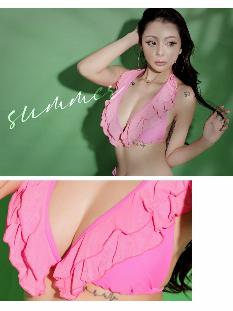またトップスのティアードフリルデザインが胸をボリュームアップして魅せてくれるのでバストに自信がないキャバ嬢さんにもおすすめしたいキャバ水着です。