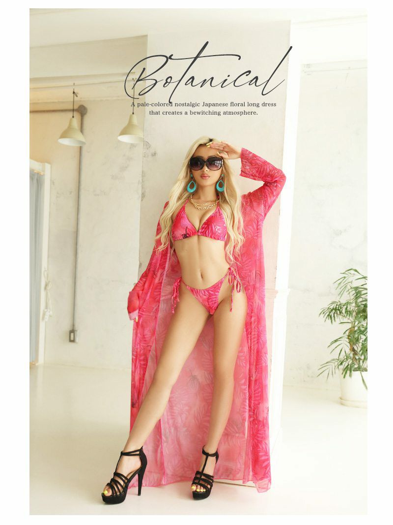 カラフルなリーフ柄ビキニと、体型カバーに最適なボタニカルガウンがセットになっています。