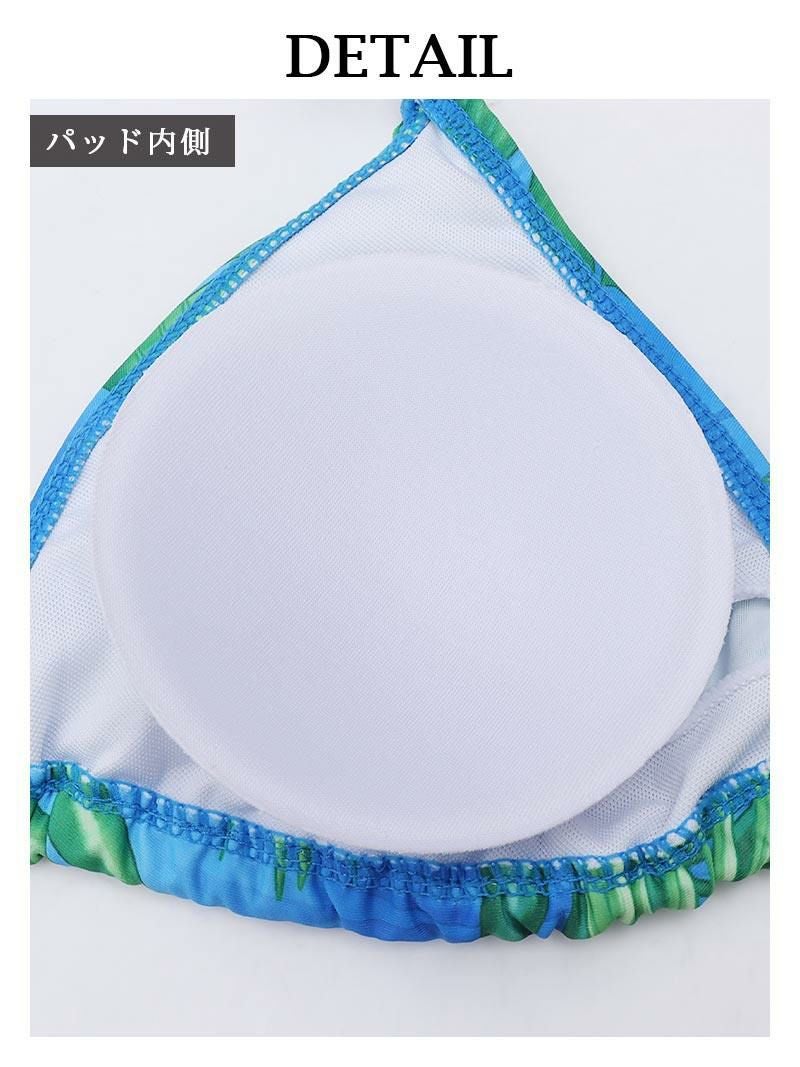 7. 水着 ガウン付き三角ビキニ リーフ柄映え3点セット水着【Ryuyu】(フリーサイズ)(ブルー/ピンク/オレンジ)