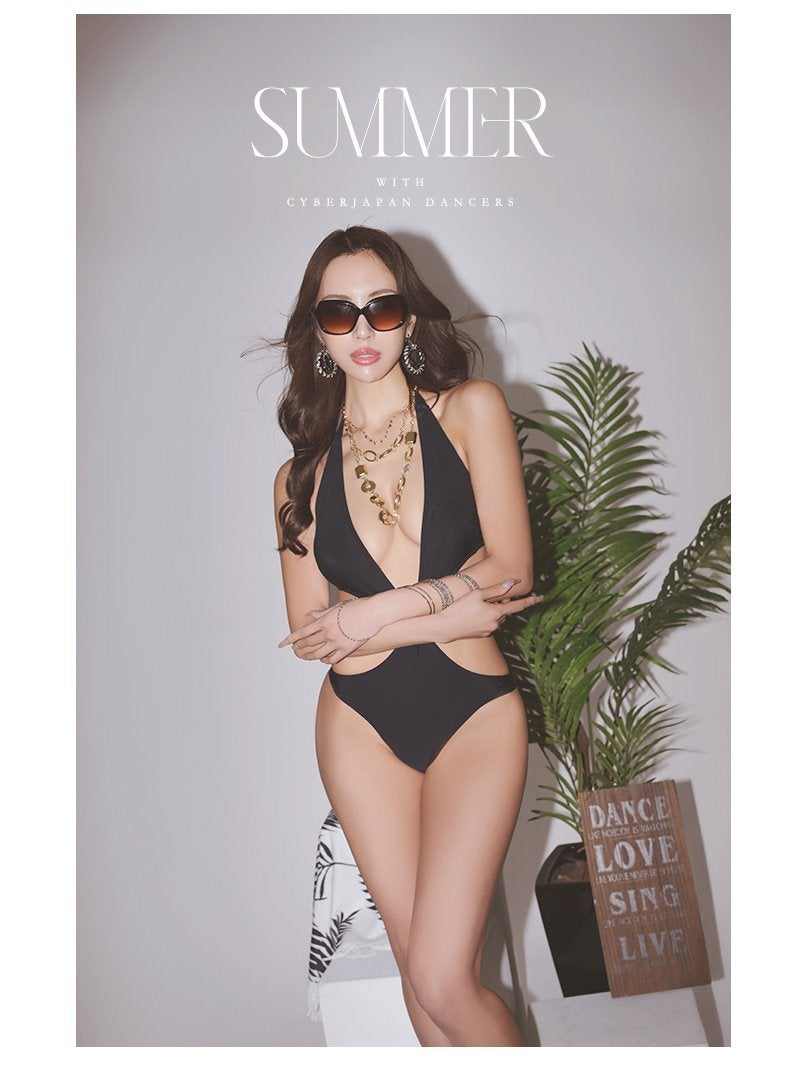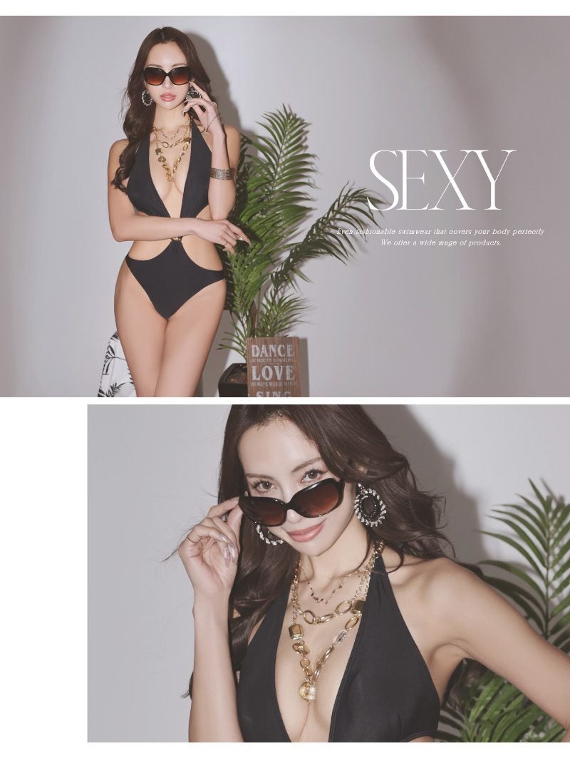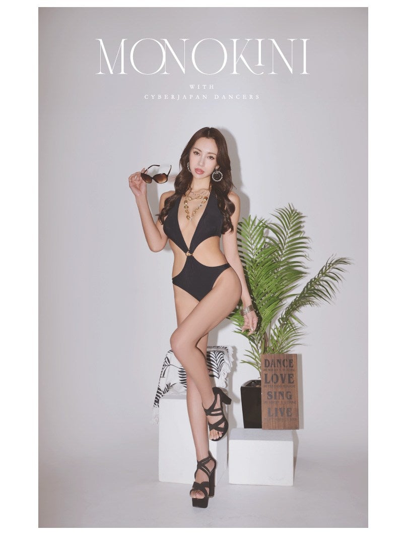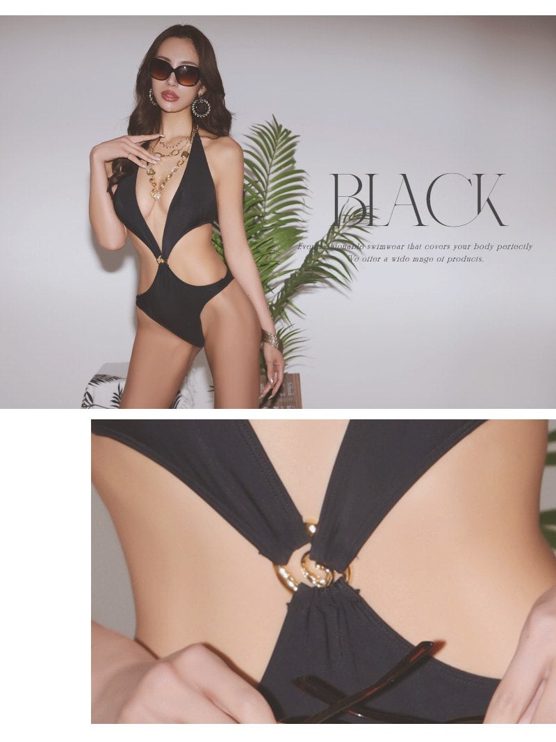 大胆なカットアウトで色気を振りまく海外セレブ風のブラックモノキニワンピース水着 【Ryuyu】