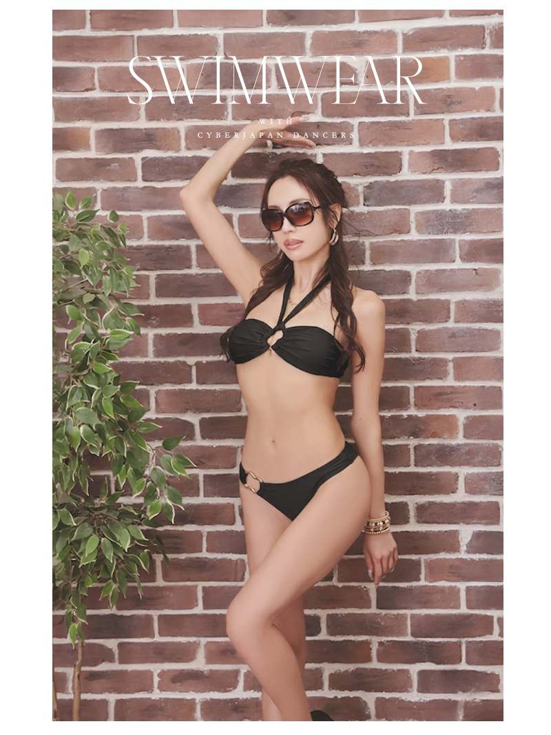 水着 ゴールドバックルが煌めくハイレグデザインで脚長効果も抜群なバンドゥホルタービキニ 【Ryuyu】
