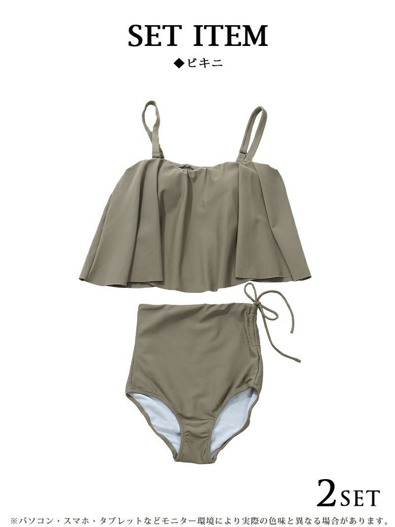 肌を見せすぎたくない人に! 水着 長めフリル体型カバービキニ あいみん 着用レディースギャル水着2点セット【Ryuyu】(S/M/L)(ブラック/ブラウン/ホワイト)