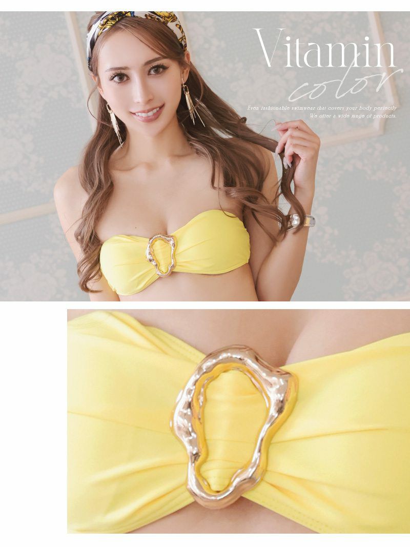 ゴールドバックルが目を惹くイエローカラーのバンドゥビキニでリゾートの主役になれるセクシー水着 【Ryuyu】
