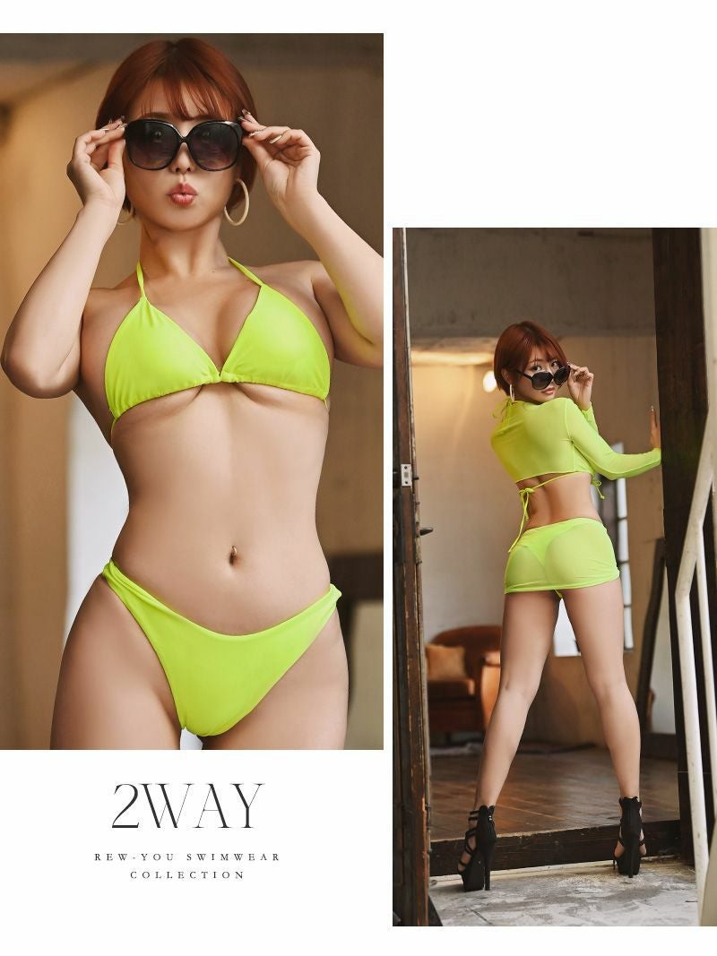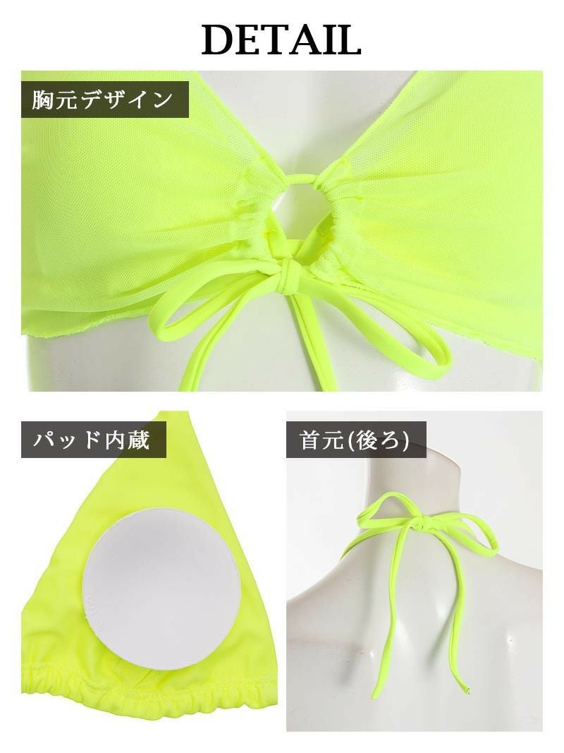 ネオン×透け感セットでビーチでも目立てる映え水着。