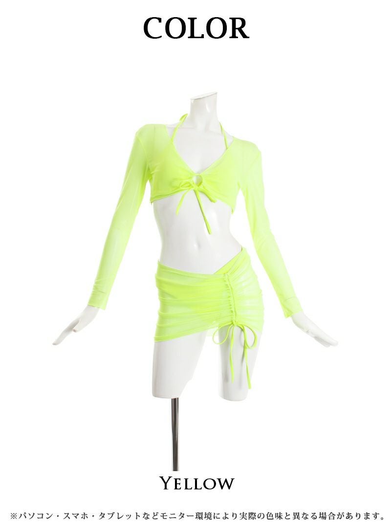 フェスにもオススメ! 水着 蛍光カラー体型カバー4点セットレディース水着 ENA着用みずぎ【Ryuyu】(S-M)(イエロー)
