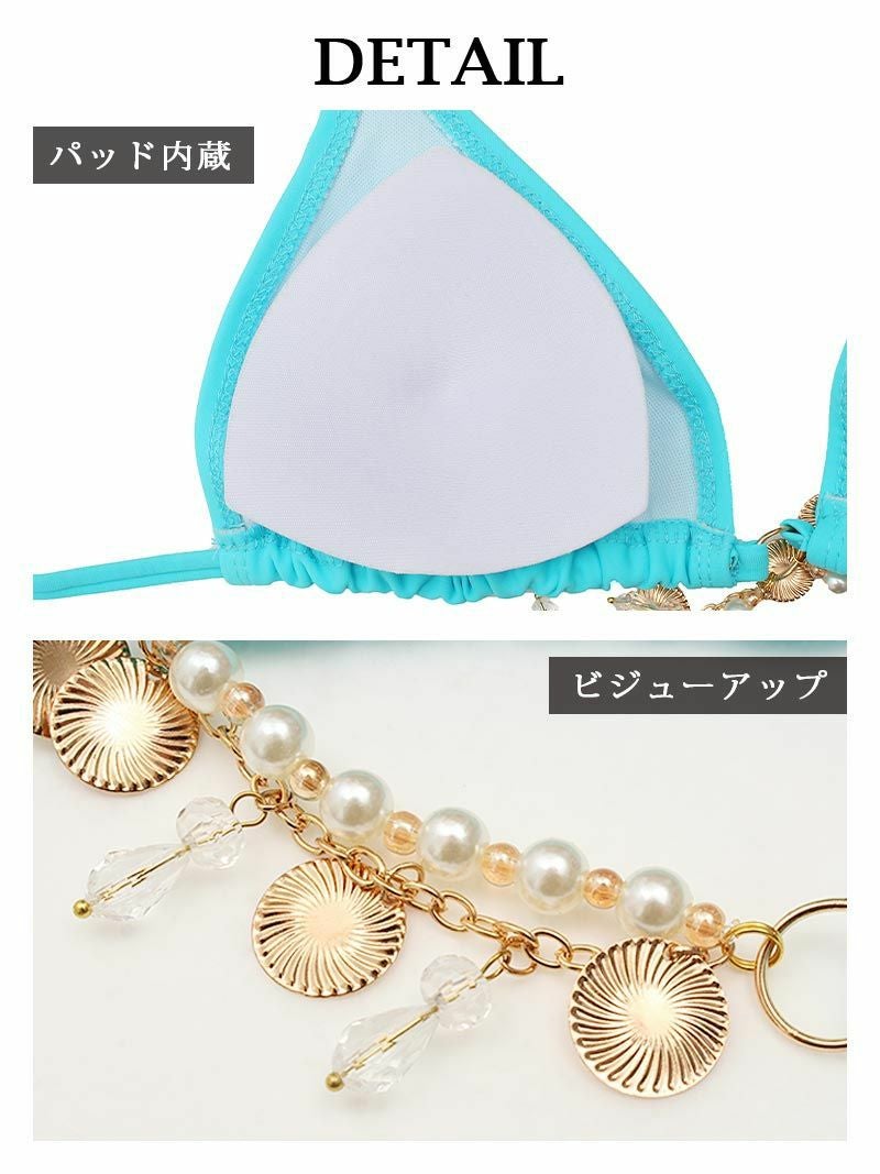 派手かわ水着が誰よりも映え! 水着 ビビットカラーシェルモチーフ三角ビキニレディース水着【Ryuyu】(S/M)(レッド/ブルー)