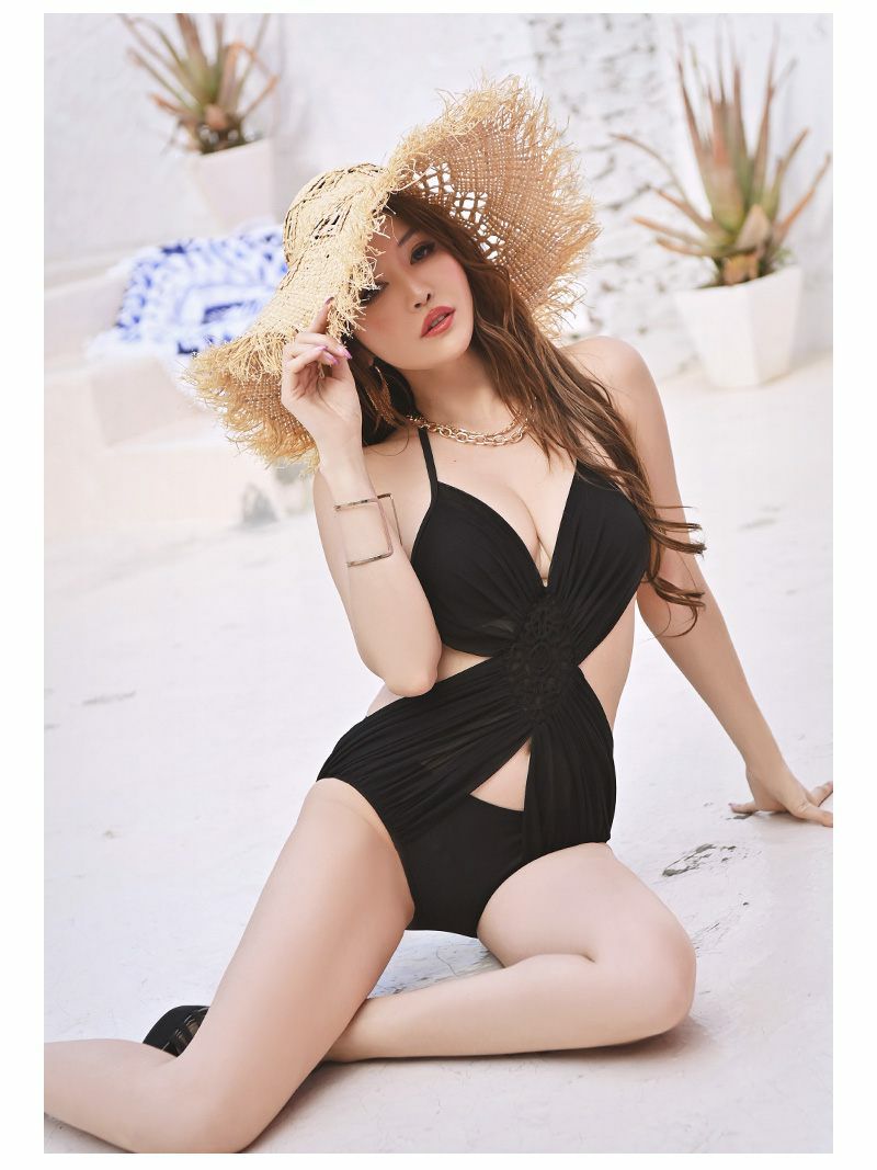 水着 カッティングブラックメッシュレースレディースモノキニ水着【Ryuyu】