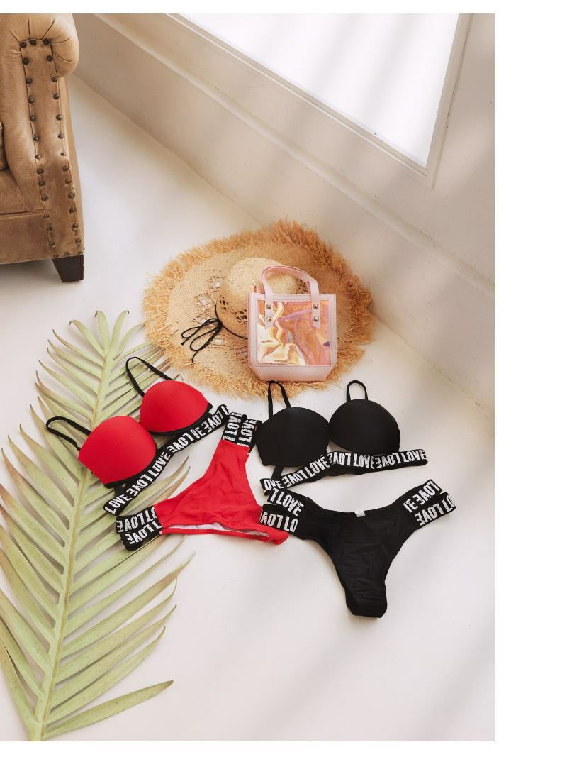 6. 水着 テープロゴワイヤー三角ビキニ 【Ryuyu】カットアウトブラジリアンレディースみずぎ(S/M/L)(レッド/ブラック)