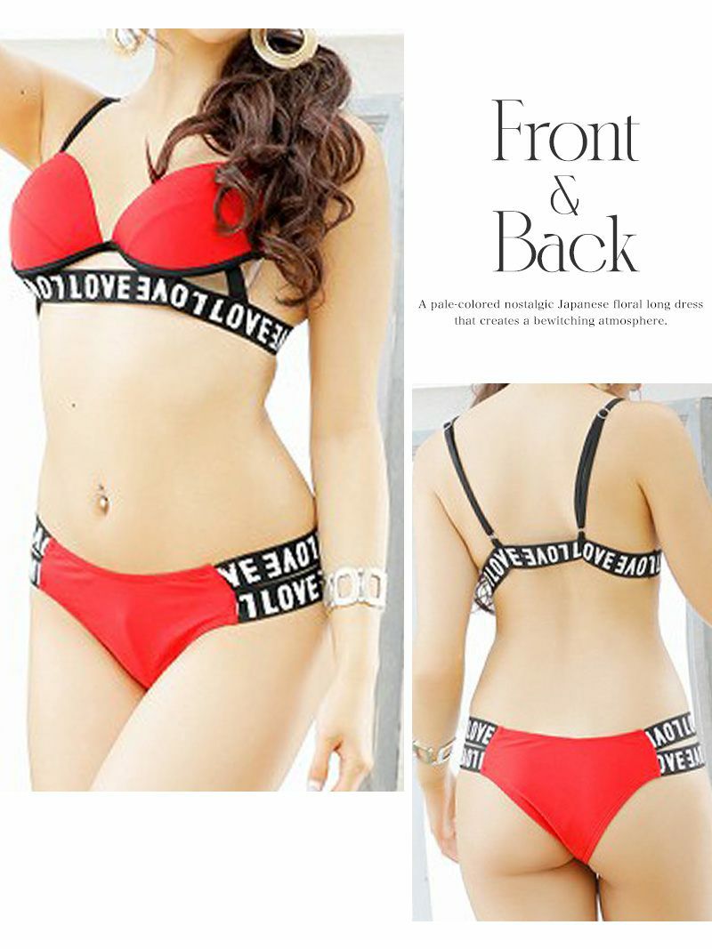 えちえちテープロゴ三角ビキニ 水着 テープロゴワイヤー三角ビキニ 【Ryuyu】カットアウトブラジリアンレディースみずぎ(S/M/L)(レッド/ブラック)