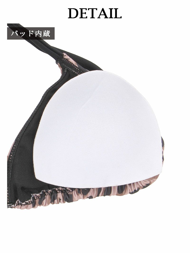 水着 ヒョウ柄メッシュホルターネック三角ビキニ MIYU 着用 レディースギャル水着【Ryuyu】(S-M/M-L)(ブラック)