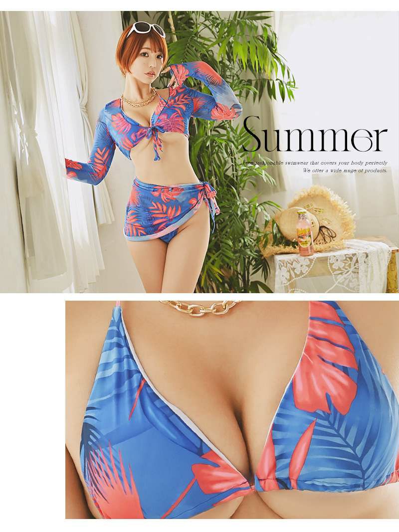 水着FINAL_SALE¥4580→¥2290! 水着 4点セットカラフルな派手柄インポート袖付きレディース水着【Ryuyu】(S-M/M-L)(ブルー)