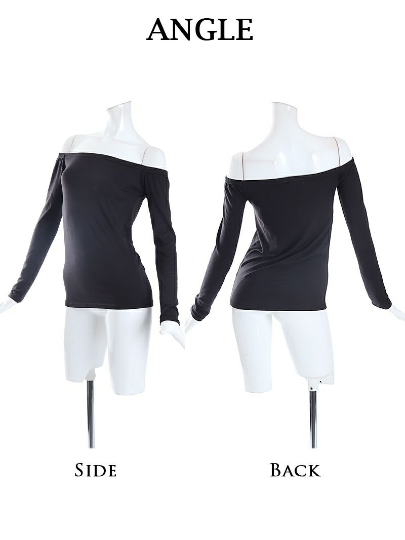寒い冬もおしゃれを楽しめる♪ 先行予約10%OFF¥990→¥891!※予約販売※爆熱オフショルダーレデイースインナー りおん 着用 極暖インナー【Ryuyu】(S-M/L-XL)(ブラック)