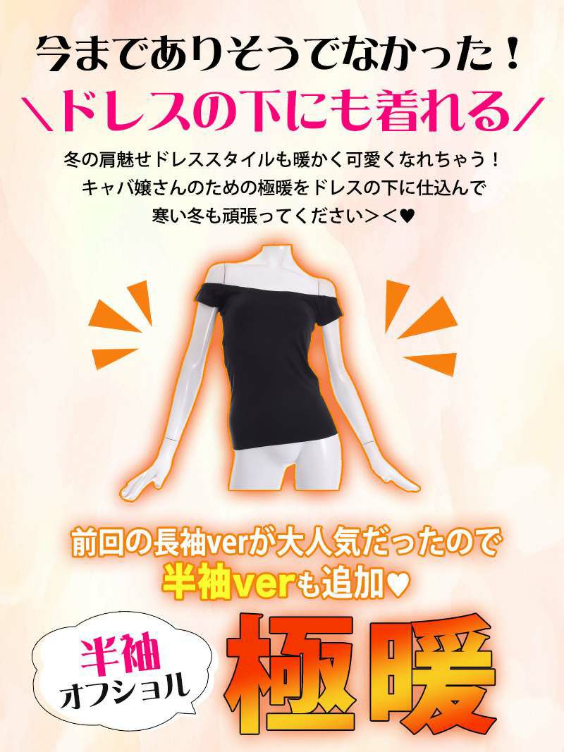 半袖のオフショルデザインで、キャバドレスの下でも目立たず快適に着用できます。