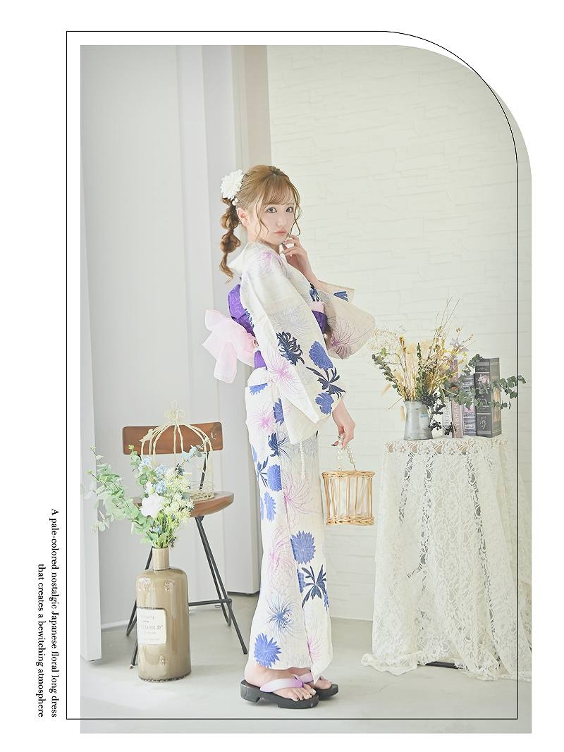 上品×かわいい、大人可愛いを叶える映え浴衣。 浴衣 ニュアンス花柄の白地大人浴衣レディース浴衣 KANO 着用 2点セット浴衣【Ryuyu】(フリーサイズ)(ホワイト)