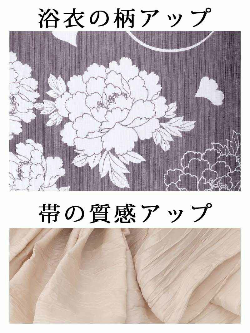 乙女心をくすぐる大人可愛いギャル浴衣♪ 浴衣 くすみグレーに牡丹柄ギャル浴衣 あいさ 着用 レディースゆかた 帯2点セット【Ryuyu】(フリーサイズ)(グレー)