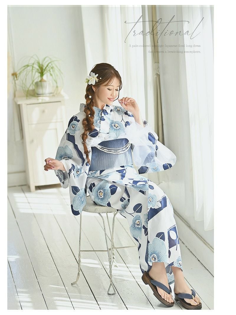 白地に青の牡丹柄が爽やかな清涼感を演出する大人浴衣。