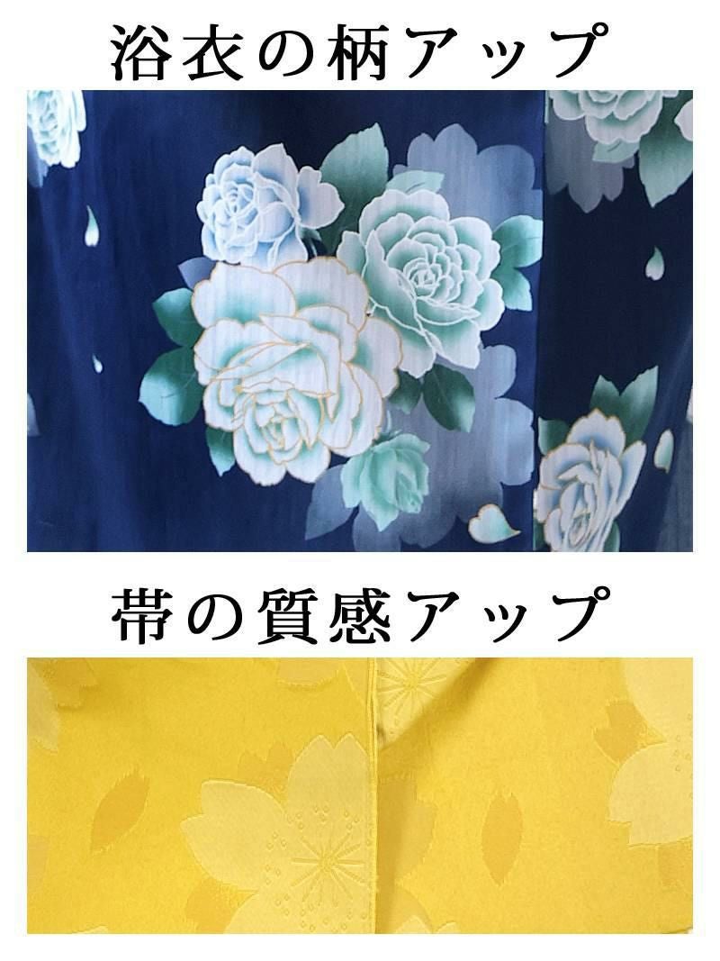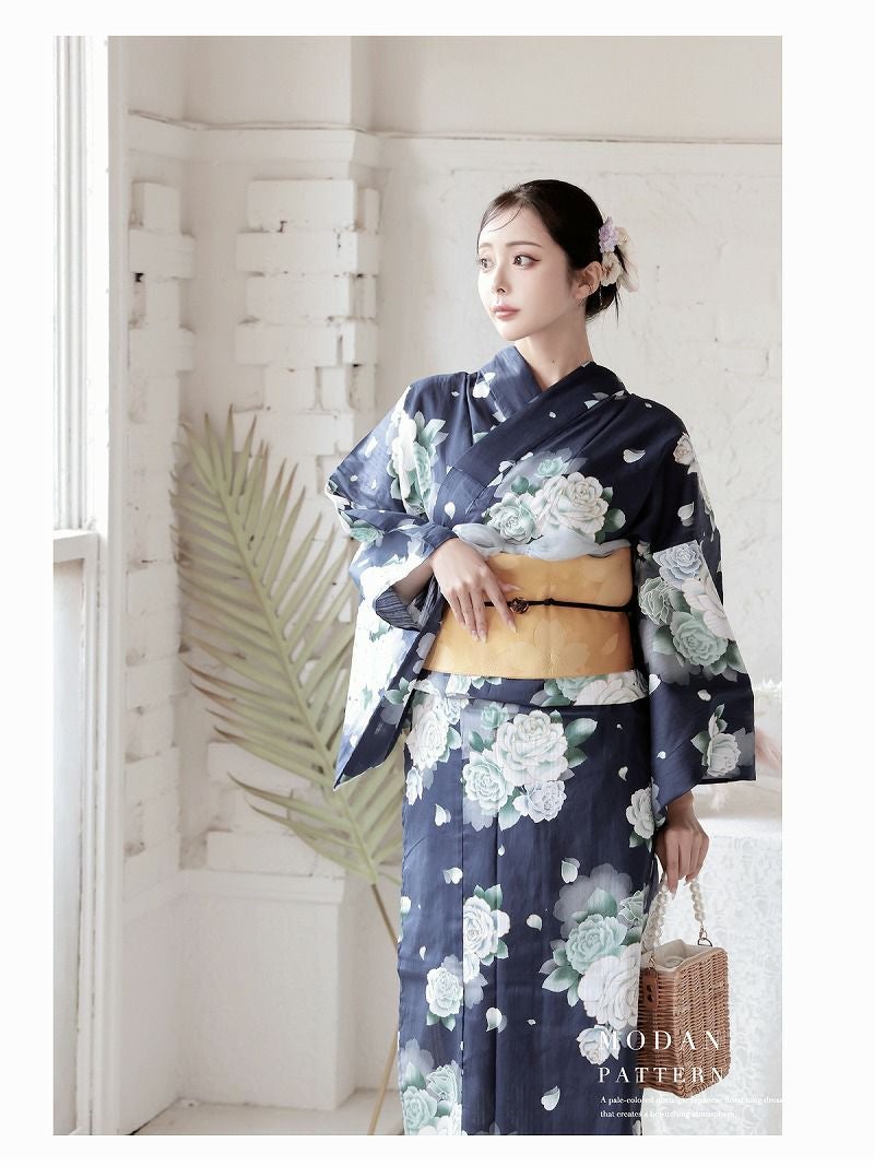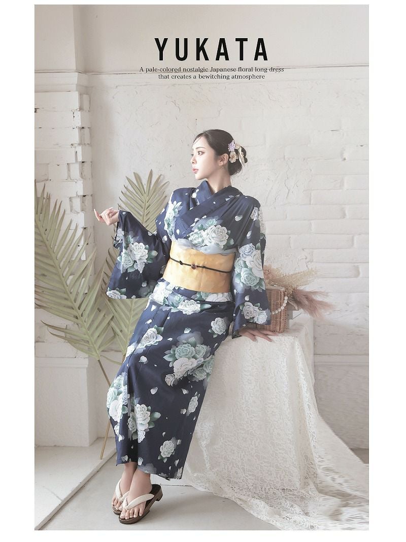 浴衣 ネイビー地に咲き誇るローズレディース浴衣 KANO 着用 大人ゆかた2点セット【Ryuyu】