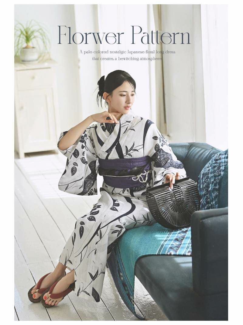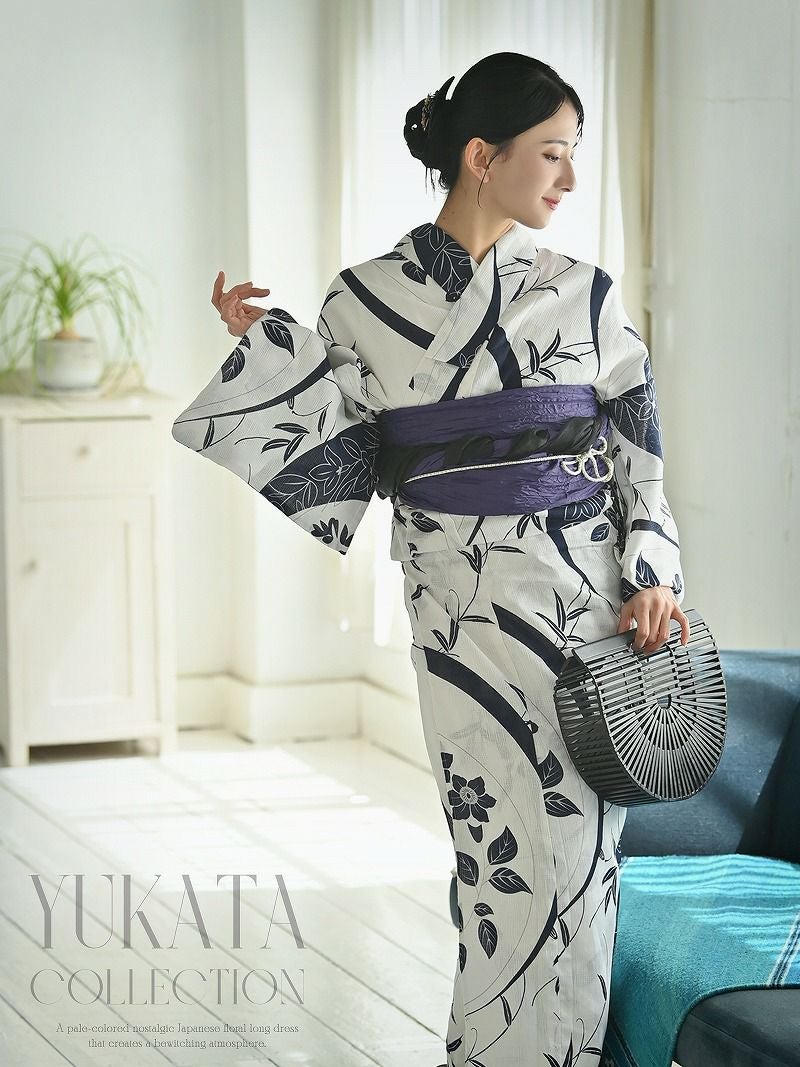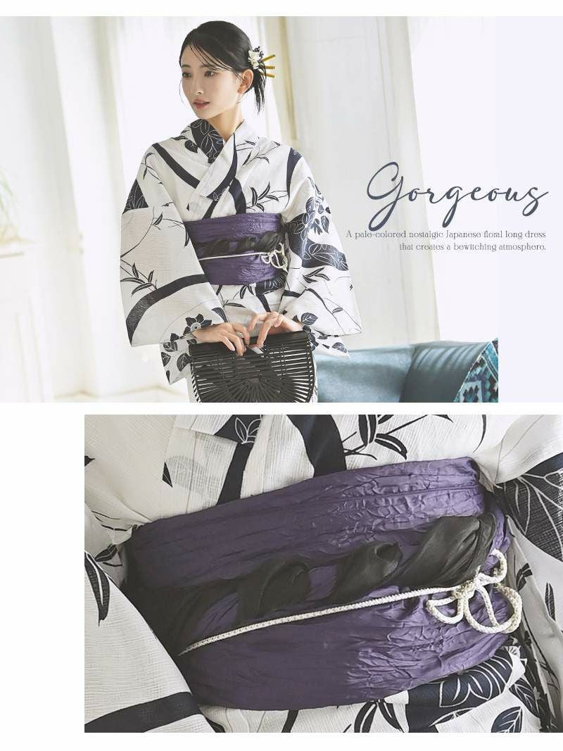 夏の夜に映えるホワイトカラーで、和の美しさを堪能できるレディース浴衣です。