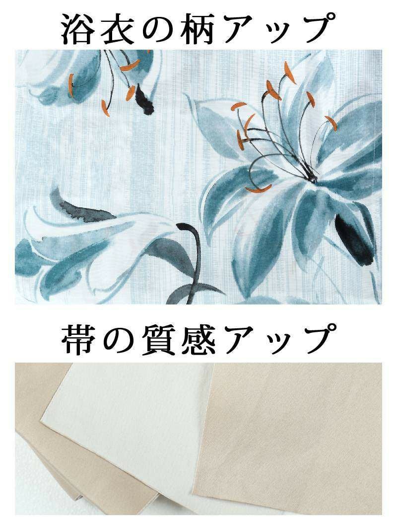 浴衣 青×白 百合の大判古典柄浴衣2点セット【Ryuyu】