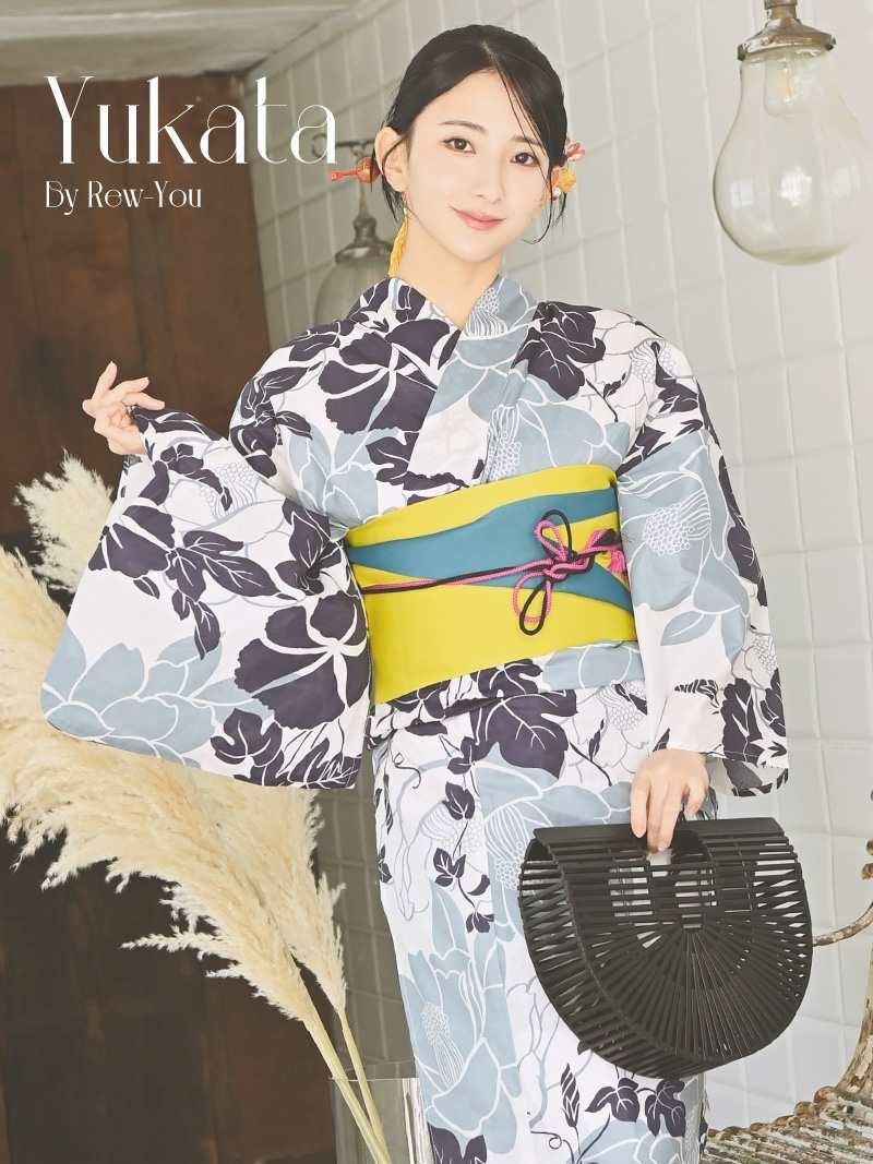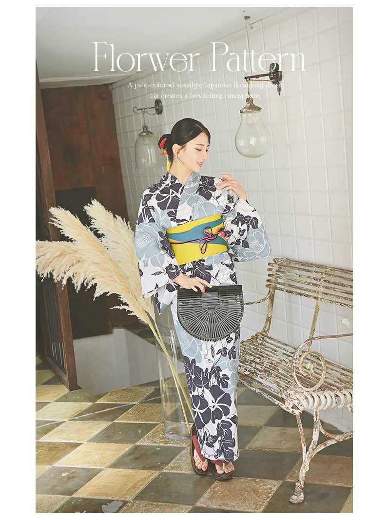メリハリある色合いで上品に着こなせるレトロモダン浴衣は浴衣と帯の2点セット。