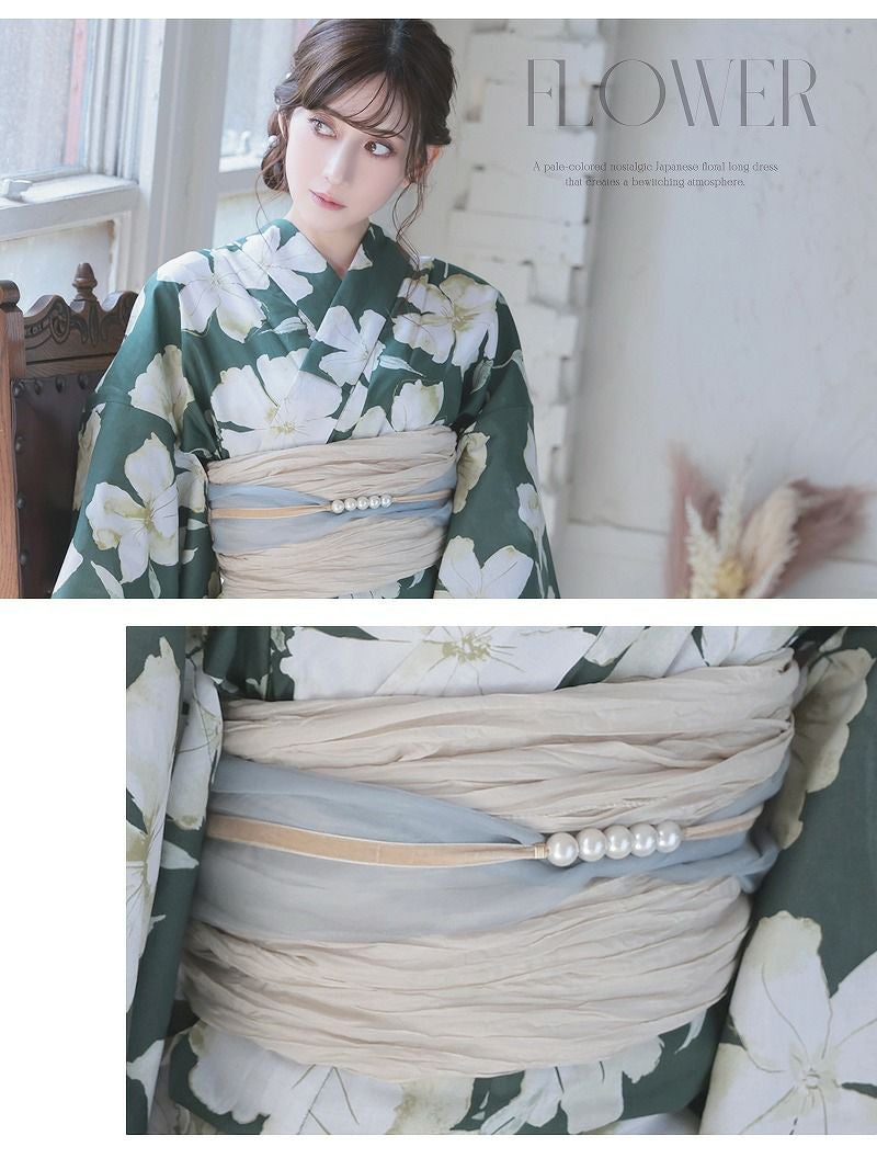 まわりと被りにくい個性派スタイルで、大人女性の魅力を引き立てる女性用浴衣は帯と浴衣の2点セット。