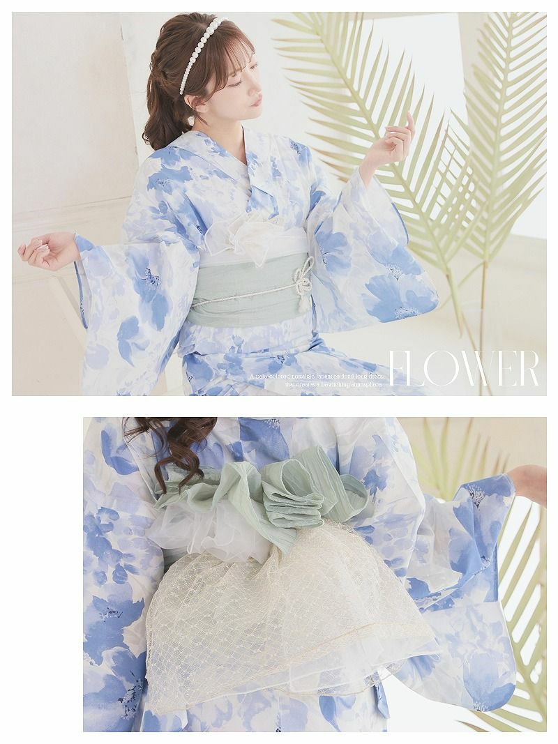 上品さと可憐さをまとえる、涼やか浴衣 グラデーションブルーが美しい大人のフラワーレディース浴衣2点セット【Ryuyu】(フリーサイズ)(ブルー)